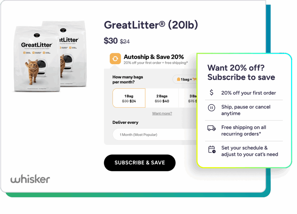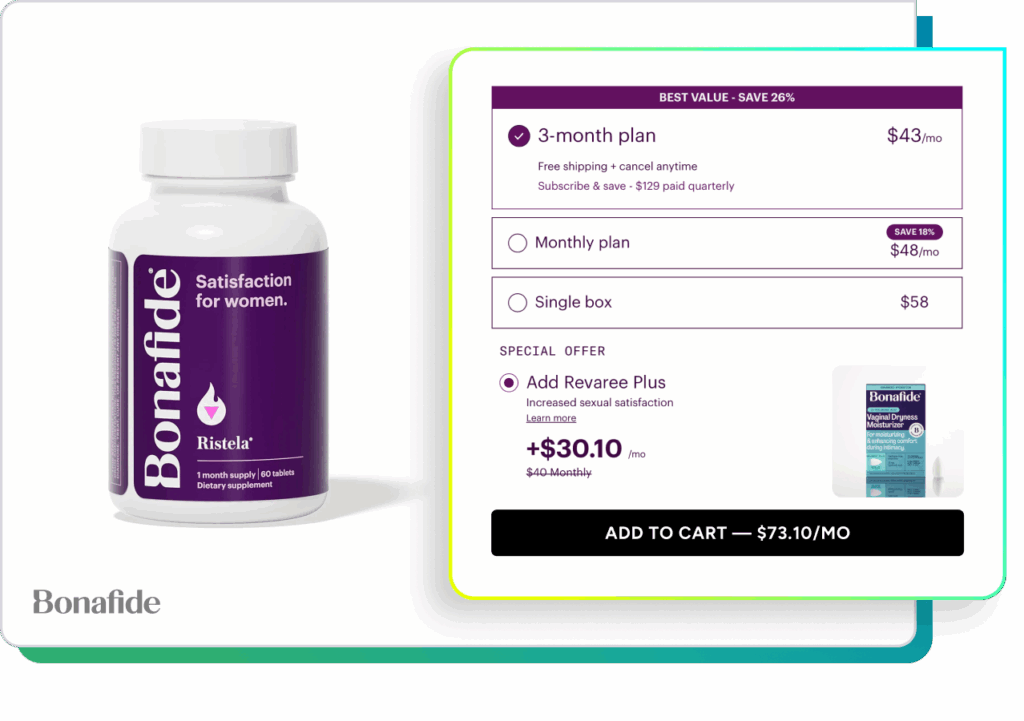 - Utilize in-cart and checkout experiences to give buyers the chance to convert their one-time purchase into a subscription
