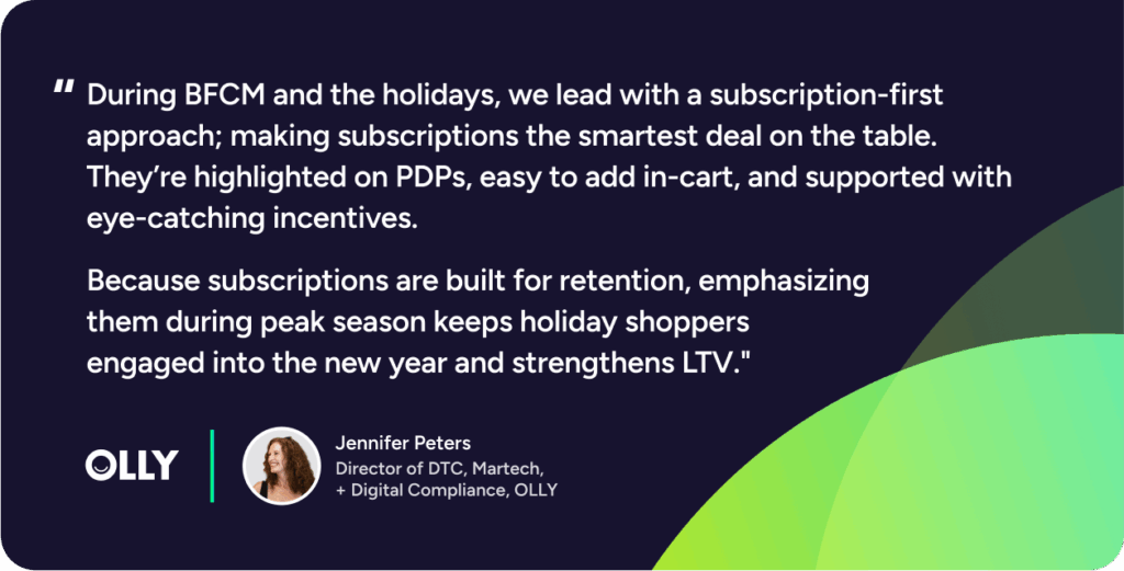 Because subscriptions are built for retention, emphasizing them during peak season keeps holiday shoppers engaged into the new year and strengthens LTV.”